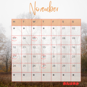 2025年11月のサロンのスケジュールです