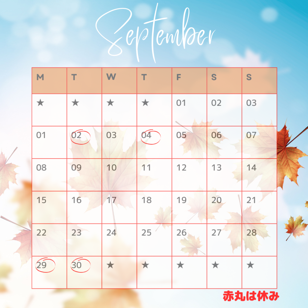 お知らせ2025年8月31日2025年9月のサロンスケジュール