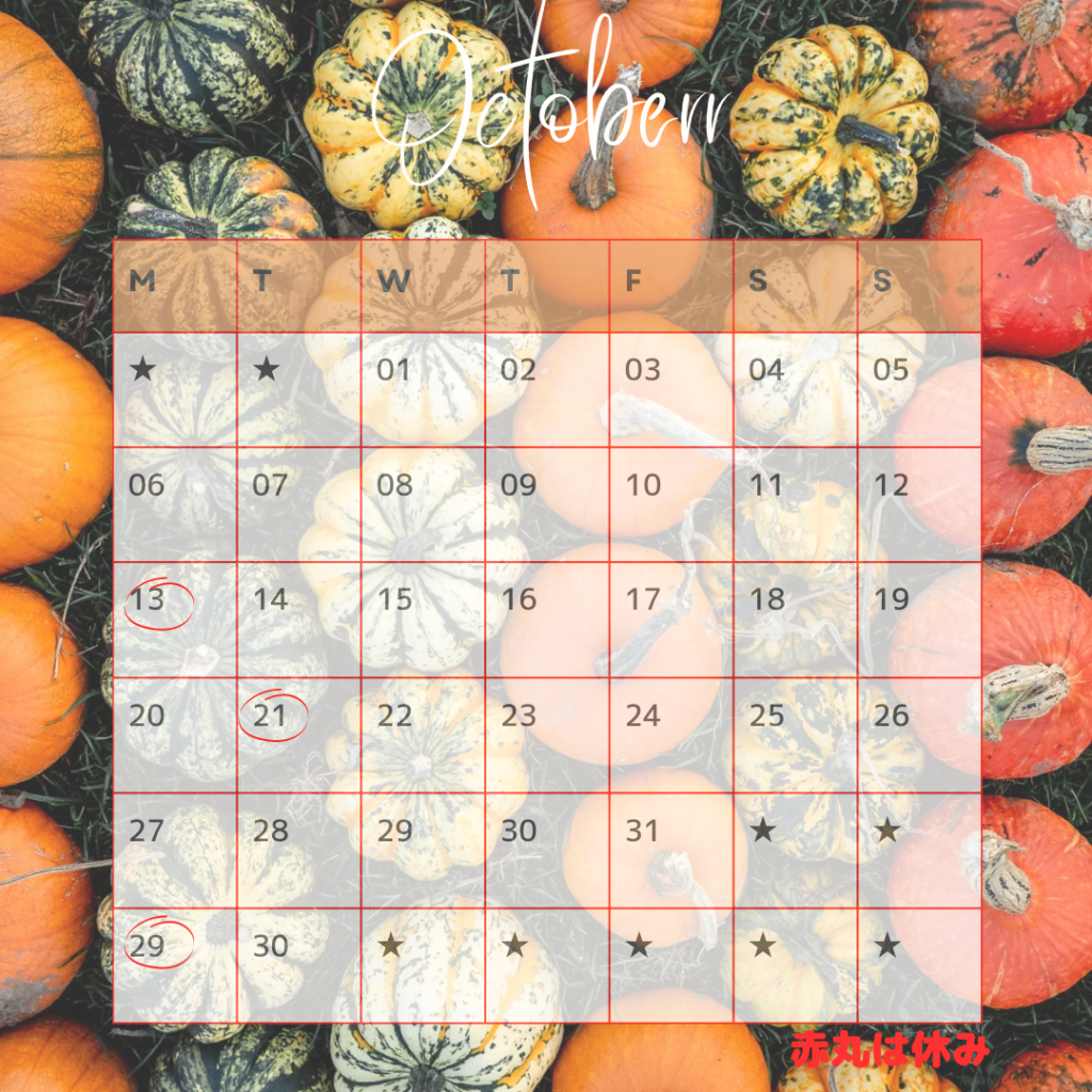 お知らせ2025年10月2日2025年10月のサロンスケジュール
